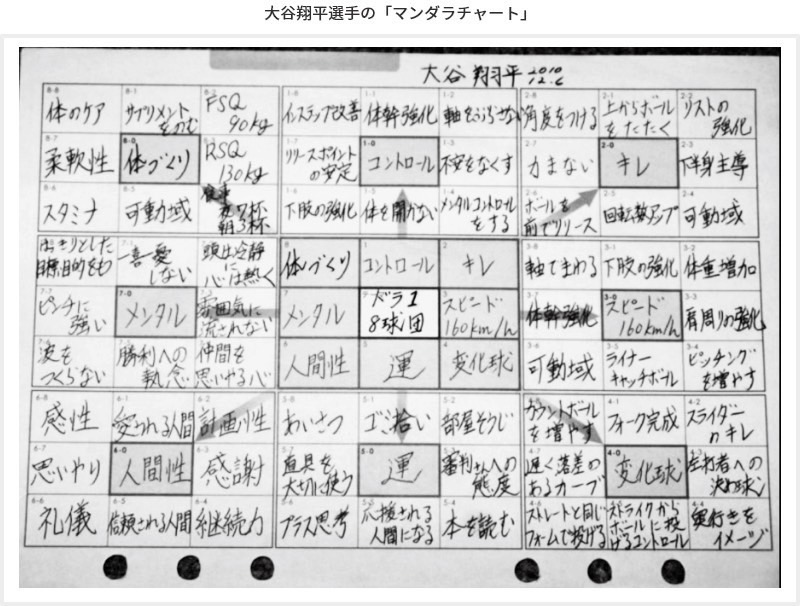 みんなも知っているかもしれませんが、大谷翔平は高校時代に目標達成シートを作り、目標達成する為には何をすれば良いのか考えて行動していたそうです。みんなも真似してみてはどうですか。